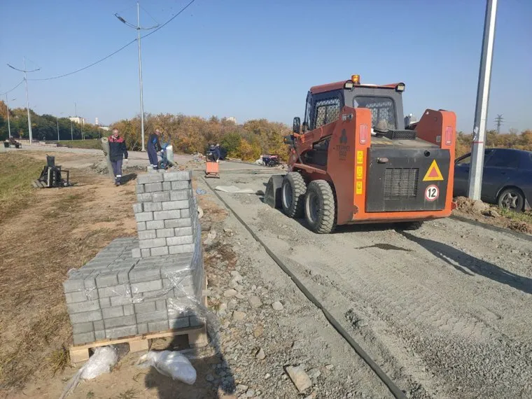 Возле главного пляжа Кургана кладут плитку вместо асфальта. Фото