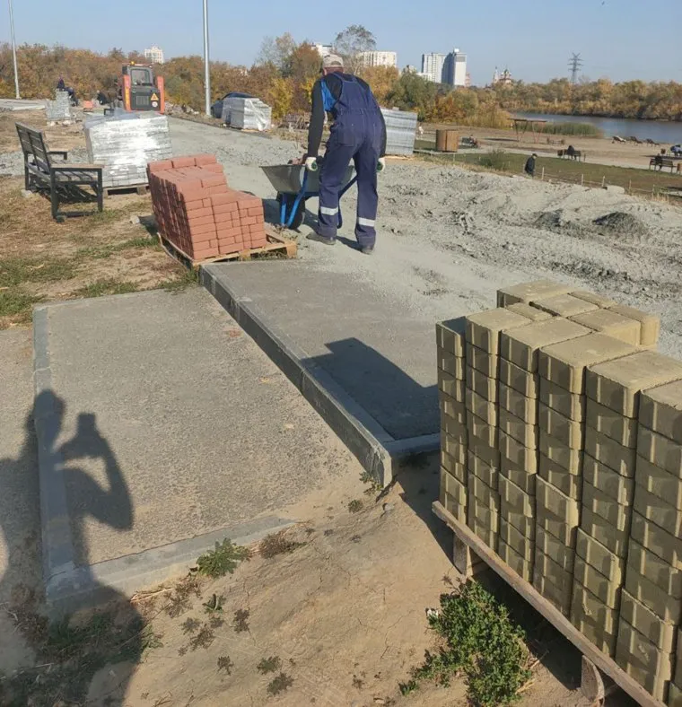 В Кургане возле популярного пляжа «Бабьи пески» рабочие кладут разноцветную плитку вместо асфальта. Об этом корреспонденту URA.RU рассказал очевидец. Работы ведутся в рамках восстановления набережной после последствий паводка.
