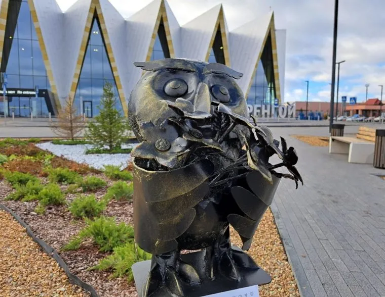 На территории аэропорта Нового Уренгоя (ЯНАО) установили медную сову с QR-кодом. Об этом сообщили в пресс-службе воздушной гавани.