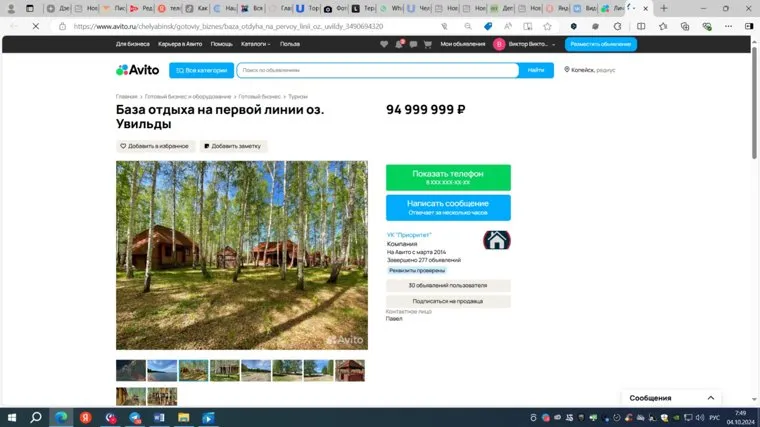 Фото: Скрин сайта «Авито. https://www.avito.ru/chelyabinsk/gotoviy_biznes/baza_otdyha_na_pervoy_linii_oz._uvildy_3490694320