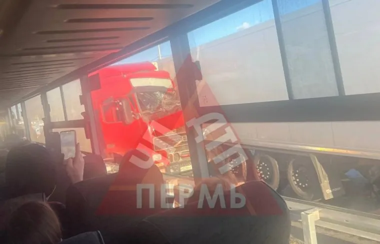 В Пермском крае произошло ДТП с двумя большегрузами, пострадал один из водителей. Фото