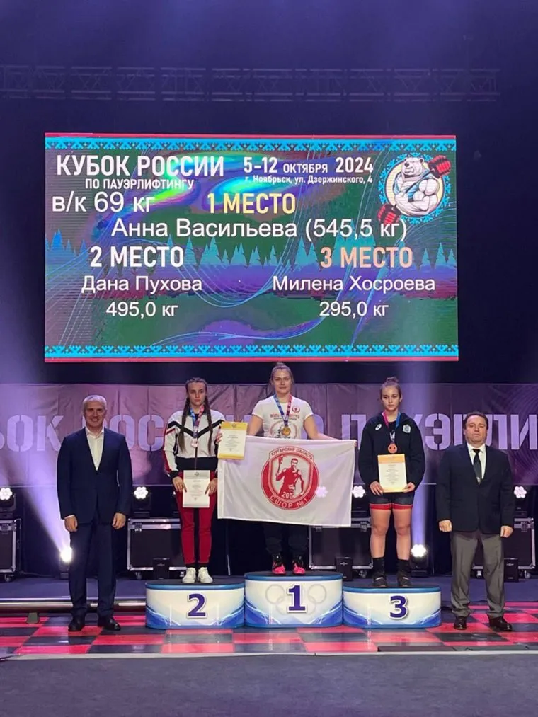 «Анна Васильева установила новый рекорд России в жиме лежа — 160,5 килограмма, став победительницей Кубка России по пауэрлифтингу в весовой категории до 69 килограммов с результатом в сумме троеборья 545,5 килограмма. Соревнования проходят в Ноябрьске (ЯНАО)», — сообщили в telegram-канале правительства.