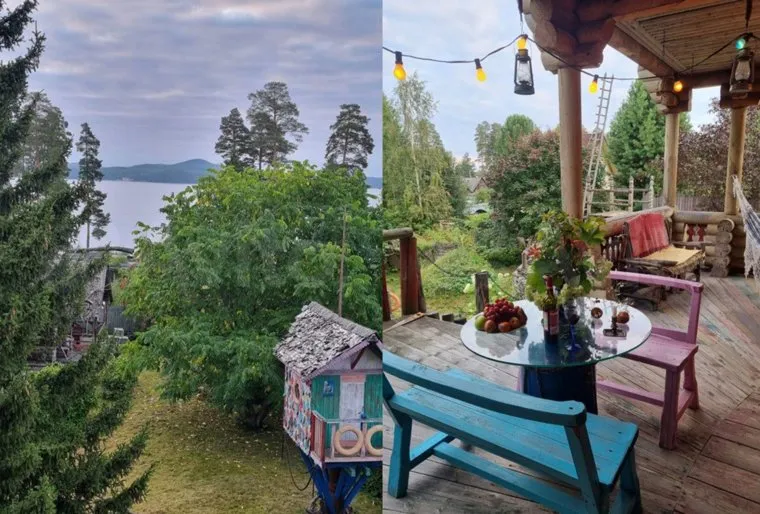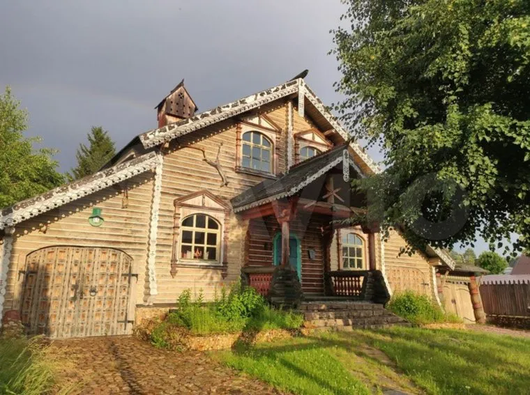 «Сказочный дом на берегу озера Таватуй спроектирован из круглых бревен», — указано в объявлении. По словам продавца, фасады созвучны с работами художников Васнецова, Билибина, Поленова. Декор и мебель продаются отдельно.
