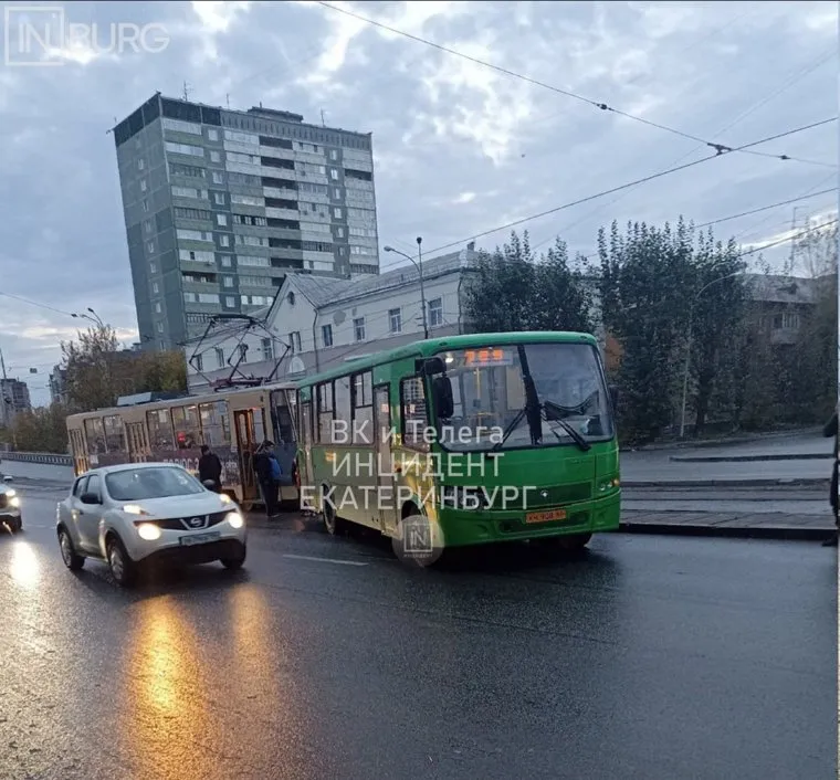 В Екатеринбурге на ЖБИ образовался затор из-за аварии с автобусом. Фото