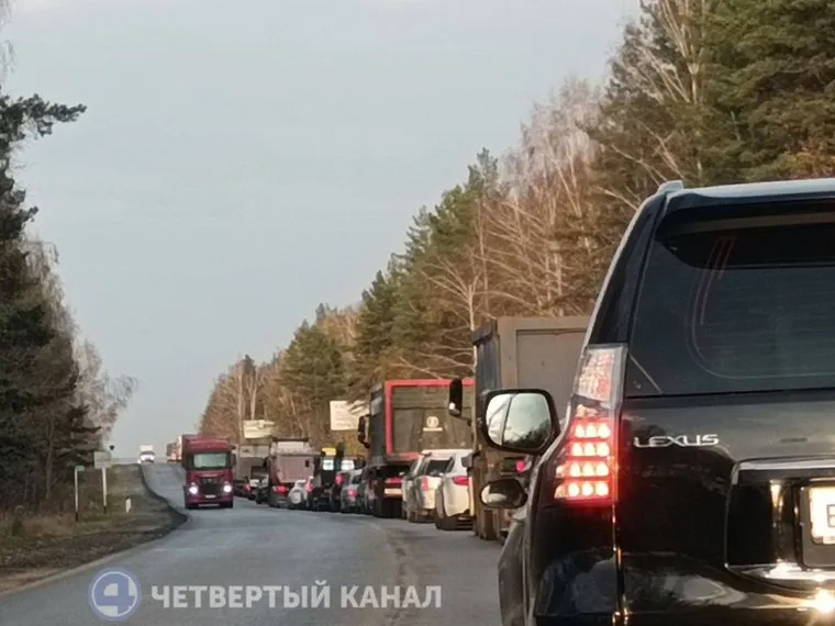 На подъезде к Екатеринбургу выстроилась двухкилометровая пробка. Фото
