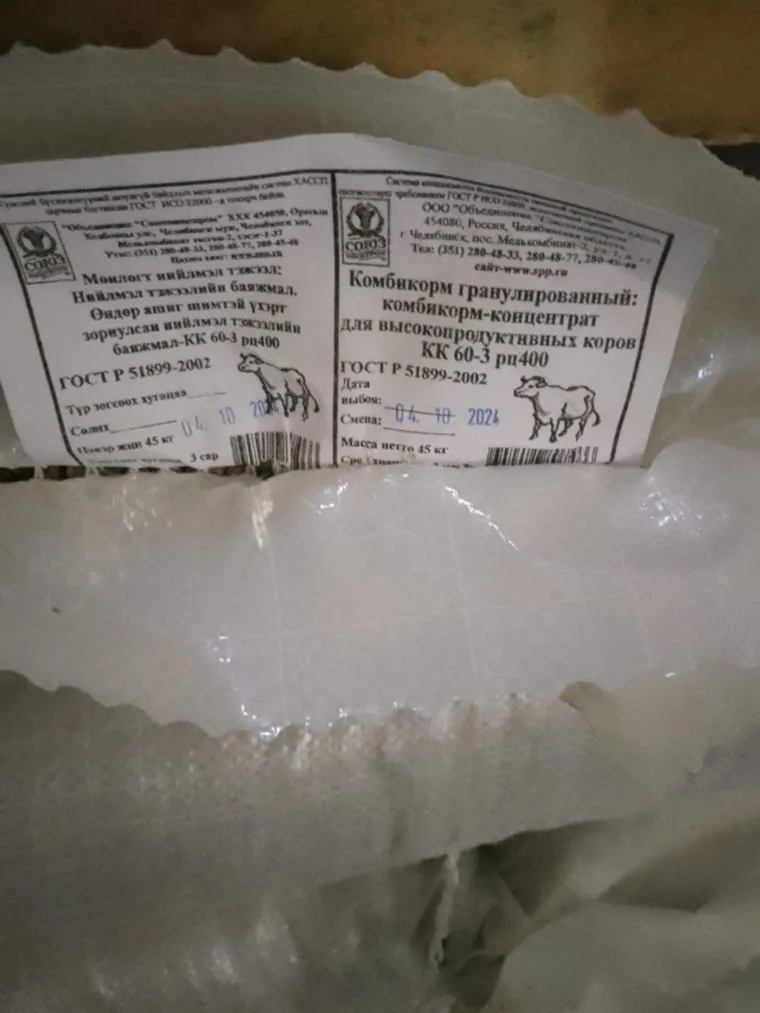 «7 октября инспекторами Уральского межрегионального управления Россельхознадзора оформлены документы для отгрузки в Монголию 65,3 т комбикормов для высокопродуктивного крупного рогатого скота. Комбикорм прошел испытания в лаборатории Челябинского филиала ФГБУ „ВНИИЗЖ‚на соответствие требованиям страны-импортера‘, — уточнили в пресс-службе ведомства. Исследования подтвердили качество и безопасность комбикорма.