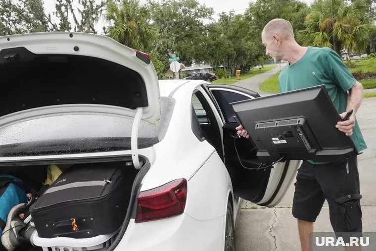 Мужчина увозит бытовую технику в предверии урагана «Милтон»