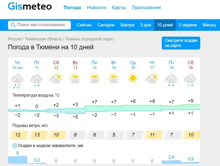 Первый тюменский снег может растаять уже к субботе, 12 октября. Об этом сообщает прогноз, размещенный на сайте метеорологической службы Gismeteo.