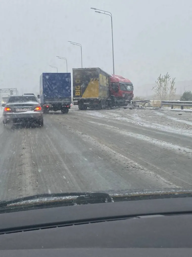 Самая частая причина ДТП — неготовность к погодным условиям. В такой ситуации оказались и дальнобойщики