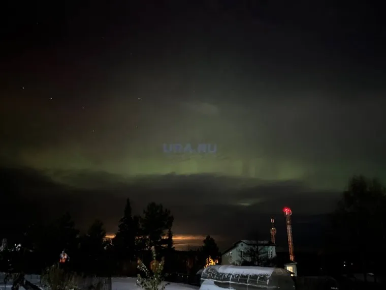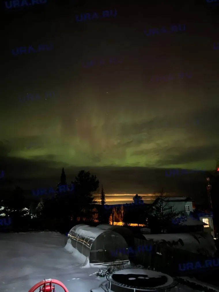 «Северное сияние над Кировградом (Свердловская область — прим. URA.RU). Небо окрасилось в зеленый цвет», — рассказал собеседник.