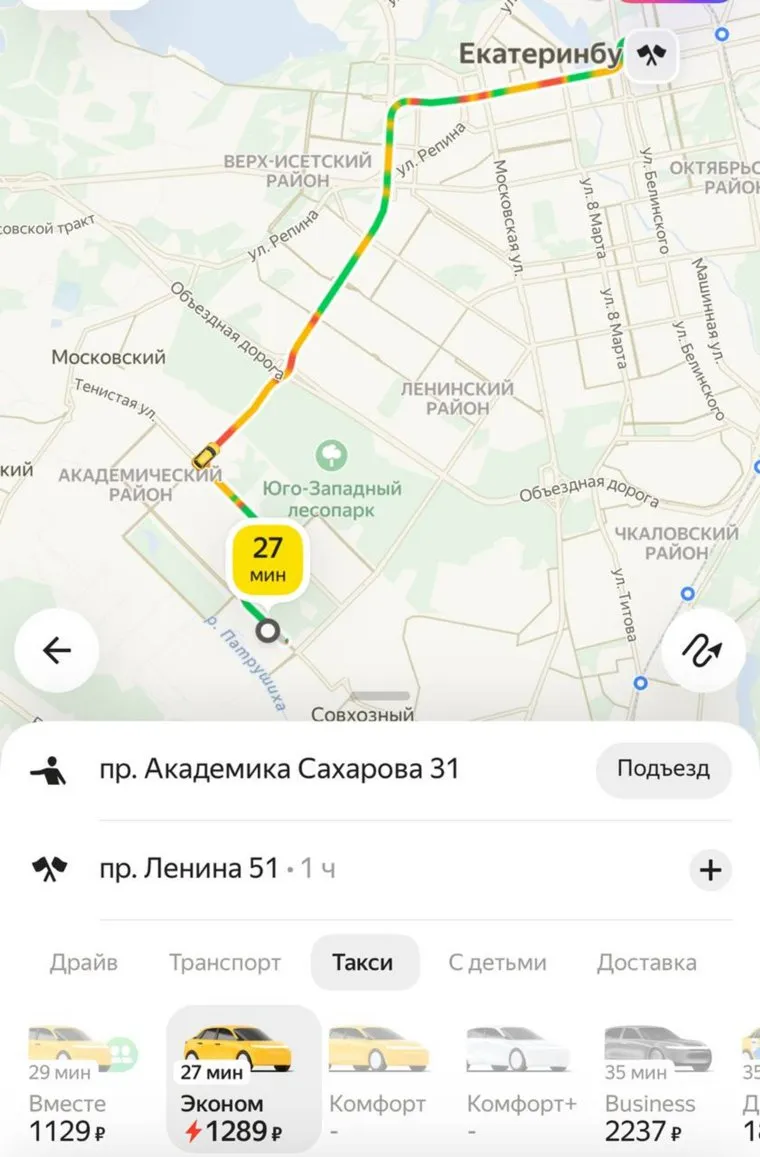 07:44 Утром 11 октября цены на такси превышают 1000 рублей. Так, 27-минутная поездка из Академического района до центра обойдется в почти 1300 рублей.