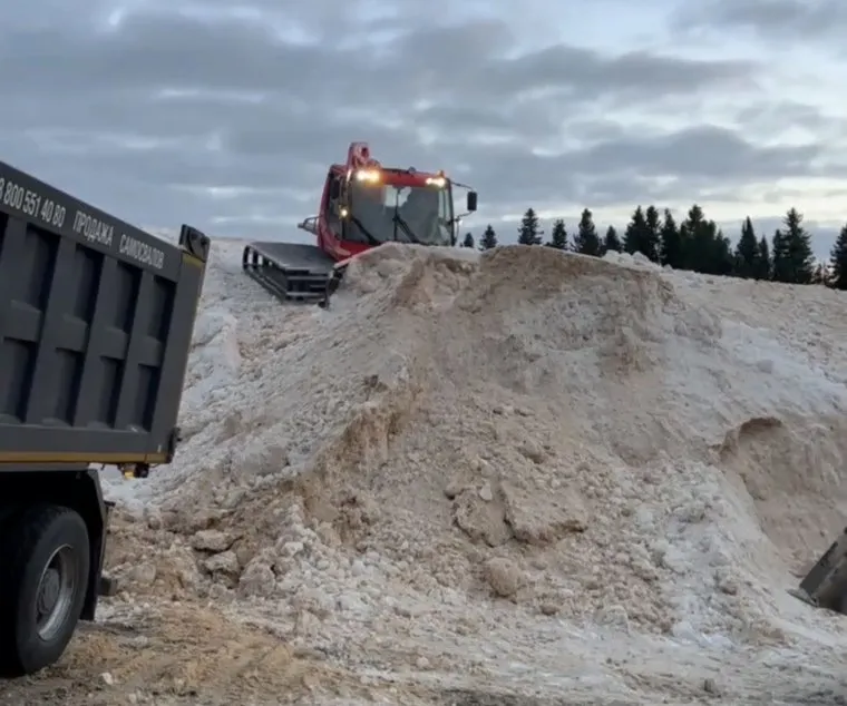 Оказалось, гору снега привезли из специального хранилища центра зимних видов спорта для подготовки лыжных трасс. «Ратраки уже на готовят зимнюю трассу. Они разравнивают снежный ковер, делают все дистанции удобными для тренировок. К приезду в Ханты-Мансийск первых сборных команд по биатлону и лыжным гонкам мы уложим снег на большую „петлю“ протяженностью более 7 километров», — сообщил telegram-канал «ЮграМегаСпорт».
