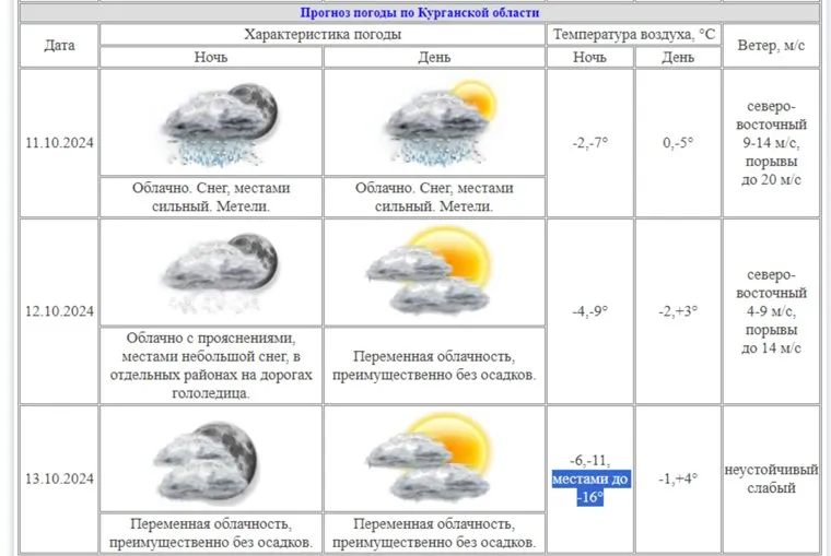 «Переменная область, преимущественно без осадков <…> местами до -16°», — сообщает портал курганского гидрометеоцентра. Такая погода прогнозируется на 13 октября.