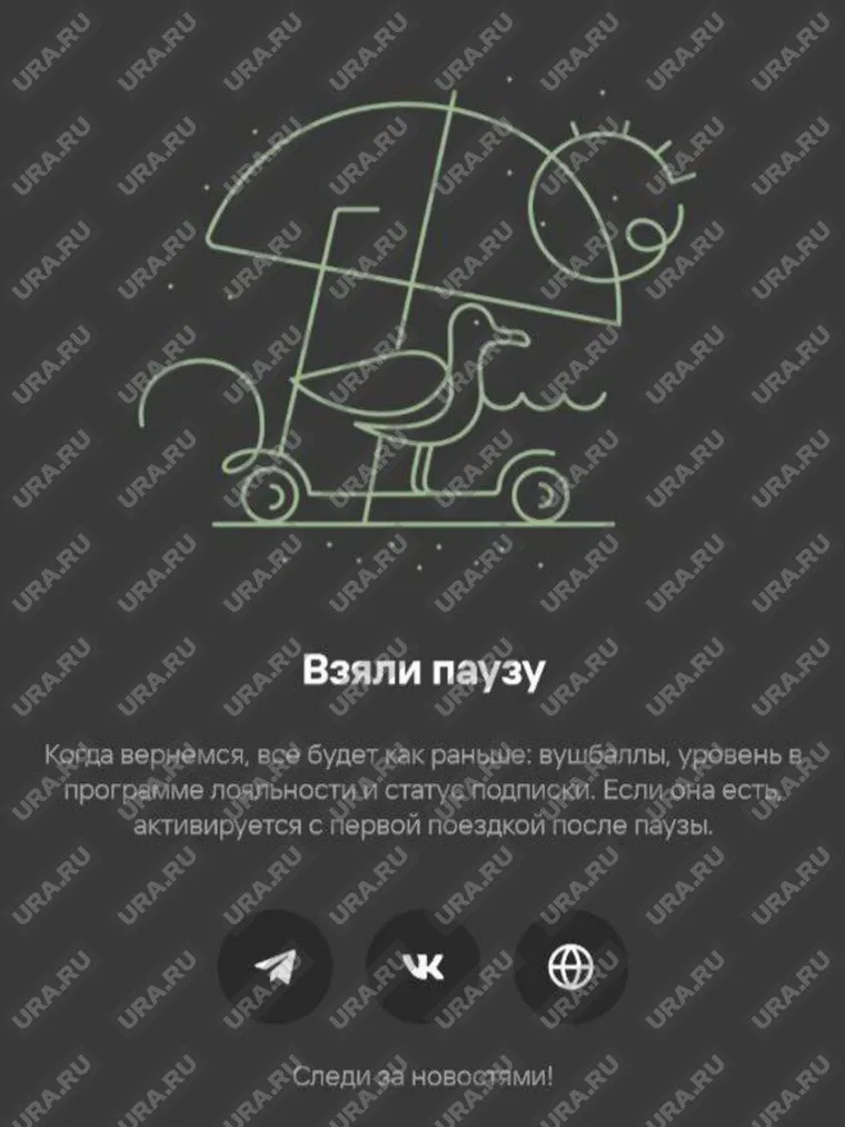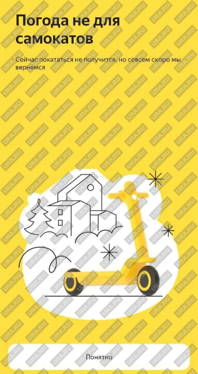 «Погода не для самокатов. Сейчас покататься не получится, но совсем скоро мы вернемся», — такая надпись появляется при попытке арендовать самокат в приложении «Яндекс Go». В сервисе Whoosh говорится, что самокаты «взяли паузу», а в «Юренте», что самокаты «уехали на каникулы».