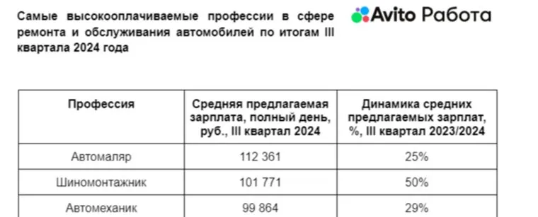 «Самой высокооплачиваемой профессией в отрасли по результатам третьего квартала 2024 года оказалась специальность автомаляра — работодатели предлагают кандидатам в среднем около 112 тысяч 361 рубль в месяц за полную занятость. Причем вакансий для автомаляров стало больше на 42%. Соискателям стали предлагать на 25% больше, чем в третьем квартале 2023 года», — отметили в пресс-службе.