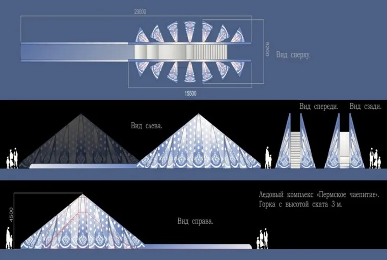 «Центральный ледовый городок на эспланаде под названием „Большое пермское чаепитие“ будет посвящен пермскому гостеприимству. Ледовый городок превратится в большой стол с ледяными сервизами и горками-скатертями, внутри которого развернется главная сюжетная линия — созданные известными пермскими шеф-кондитерами десерты», — рассказали в городской администрации.