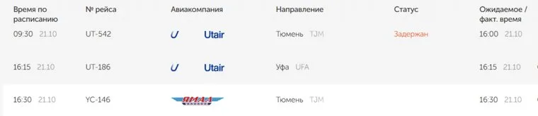 «В Новом Уренгое задерживается рейс UT-542 до Тюмени. Самолет должен был вылететь в 9:30 21 октября, но по технической причине вылет состоится позже. Ориентировочное время отправки воздушного судна 16:00», — сообщили корреспонденту агентства в пресс-службе аэропорта Новый Уренгой.
