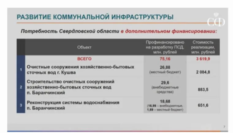 Указал он и на вклад самого региона — власти поддержали ремонт и реконструкцию учебных учреждений, строительство новых общежитий в Баранчинском, в целом активно участвуют в федеральных программах и привлекают к развитию градообразующие предприятия. Затраты же на строительство новых очистных и реконструкцию старых оценили в 3,6 млрд рублей. Эту сумму и попросили указать в проекте постановления, которую должно рассмотреть правительство РФ.