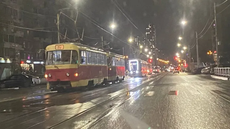 Движение трамваев в центр Екатеринбурга встало из-за аварии. Фото
