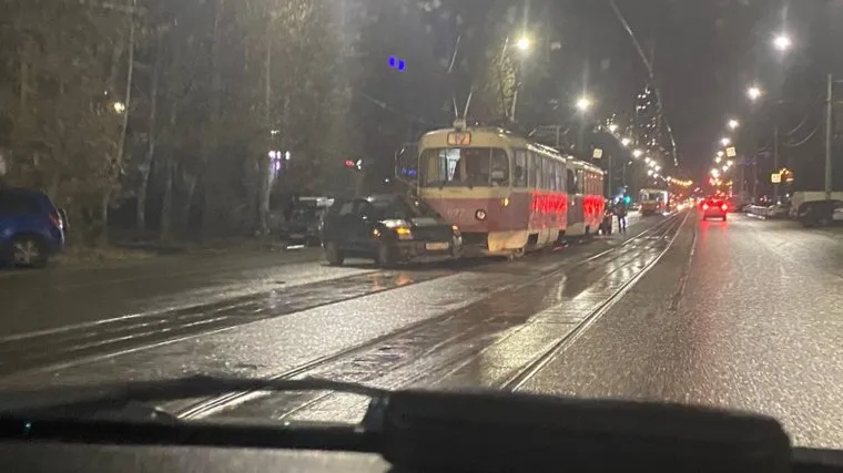 В Екатеринбурге вечером 23 октября на улице Викулова трамвай врезался в легковушку, что парализовало движение составов в центр города. Об этом URA.RU рассказал читатель.