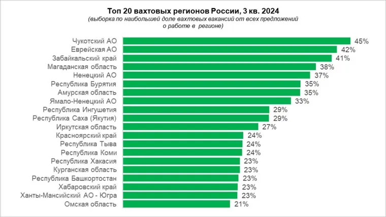 Спрос на вахтовиков продолжает расти: по сравнению с аналогичным периодом прошлого года, количество вакансий в Курганской области в третьем квартале 2024 года выросло на 56%. «Это значительно выше среднероссийского показателя, который составил 27%», — отмечают эксперты сервиса HeadHunter.