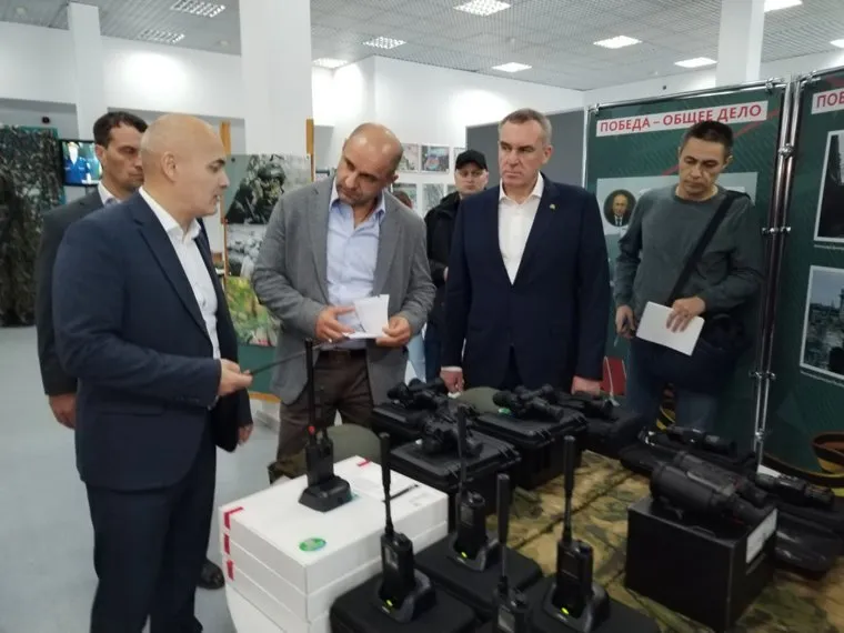 14:55 Кроме дронов, в ЦВЗ внимание полпреда привлекли рации, бинокли и приборы ночного видения.
