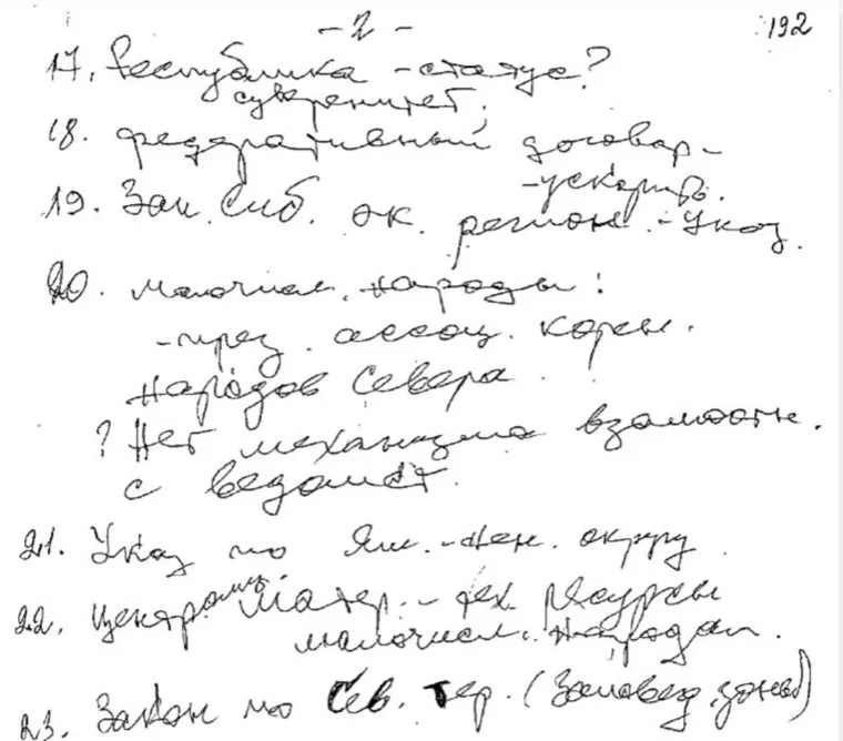 Пометки в блокноте Бориса Ельцина, который он брал с собой в поездку по Тюменской области