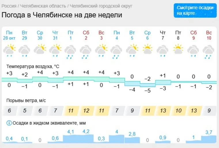 Снег и плюсовые дневные температуры обещают челябинцам на последней неделе октября
