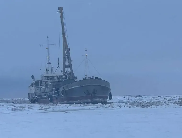 Баржа с топливом для отдаленного поселка в ЯНАО застряла во льдах. Фото