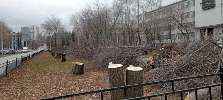 В Екатеринбурге возле УрФУ вырубили целую аллею деревьев. Фото