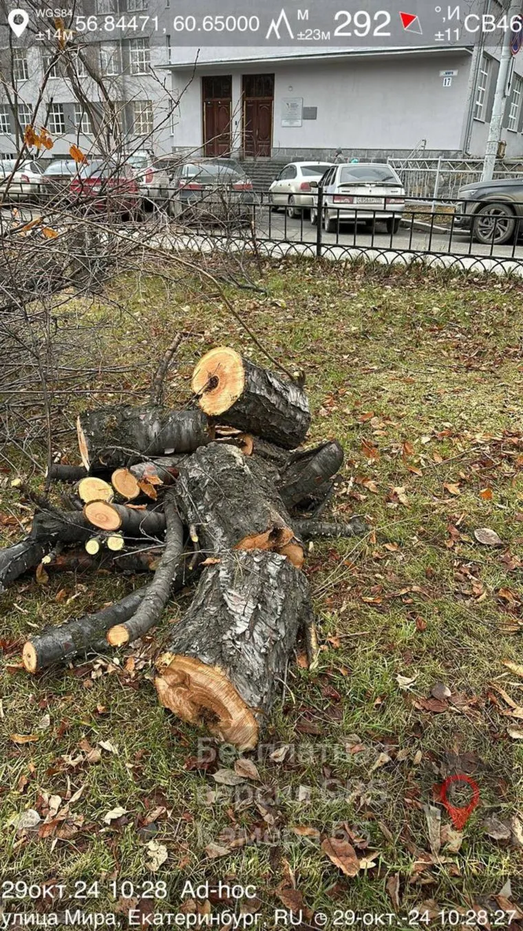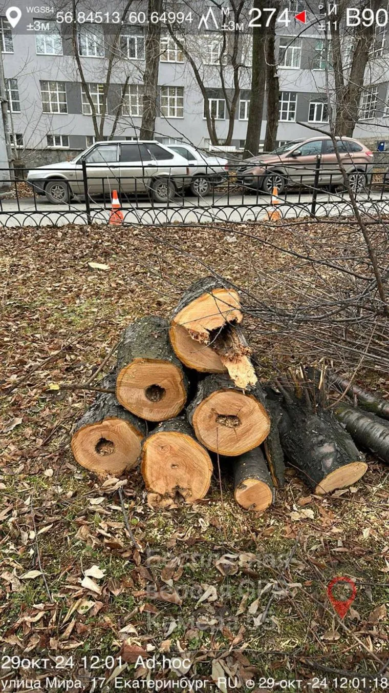 «Очередное уничтожение деревьев. На улице Мира между гарнизонным судом и стройфаком УПИ», — написал Москвин в telegram-канале «Коренной екатеринбуржец».
