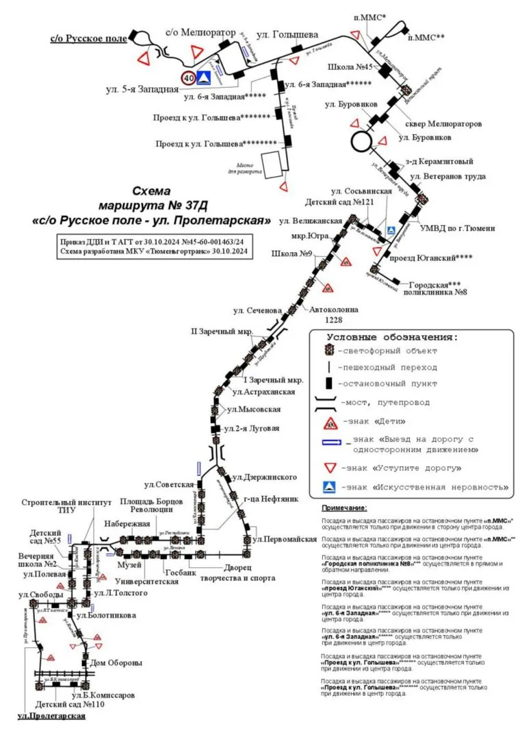 «С 1 ноября 2024 года изменится схема движения маршрута регулярных перевозок № 37д „с/о ‚Русское поле‘ — ул. Пролетарская“. В схему движения включаются остановочные пункты „Проезд к ул. Голышева“ и „ул. 6-я Западная“ в прямом и обратном направлениях», — сообщили в пресс-службе мэрии.