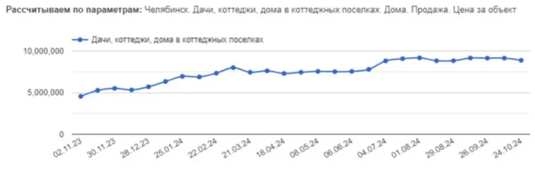 «В Челябинске с 10 по 24 октября цены на коттеджи снизились до 8 миллионов 873 тысяч рублей за объект. Разброс цен на данное жилье в городе существенный — от 1 миллиона 350 тысяч рублей до 41 миллиона 500 тысяч рублей», — следует из динамики цен на сайnе Restate.