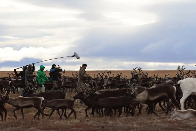 На съемках первое, что впечатлило, это закат. Когда солнце, едва коснувшись горизонта, снова начинает всходить. Ну и, конечно, непредсказуемая погода. Очень интересно было работать с коренными малыми народами Крайнего Севера. Наш руководитель по объектам ездил в тундру и договорился с семьей оленеводов об участии в съемках. Ребята оказались максимально вовлечены в процесс. Мы видели, что поначалу им было тяжело, но в итоге они стали стопроцентными участниками съемочной группы, у нас с ними было полное взаимопонимание, это было просто чудо!
