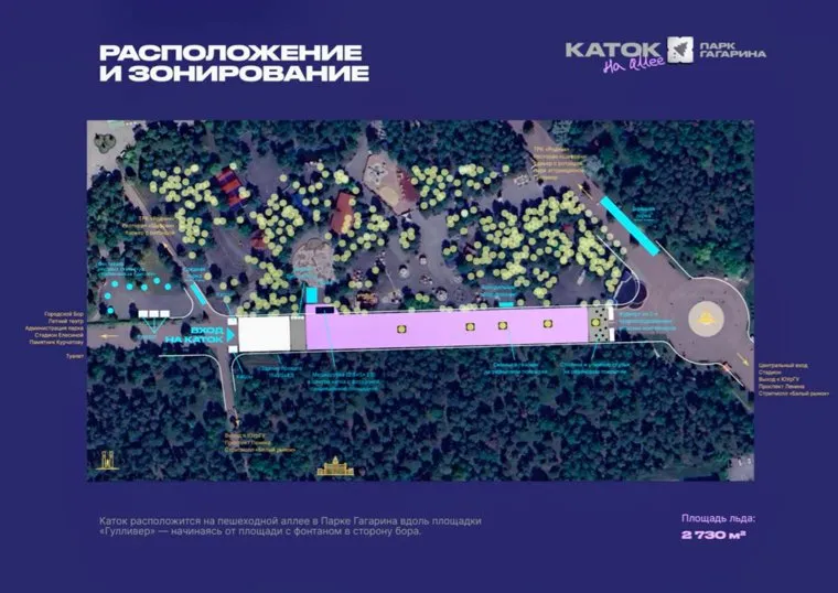 В конце декабря в парке Гагарина появится новый каток. Он будет находится на главной аллее, которая находиться ближе к улице Коммуны. В этом году там уложат морозильное оборудования — кататься там можно будет даже при плюсовых температурах.