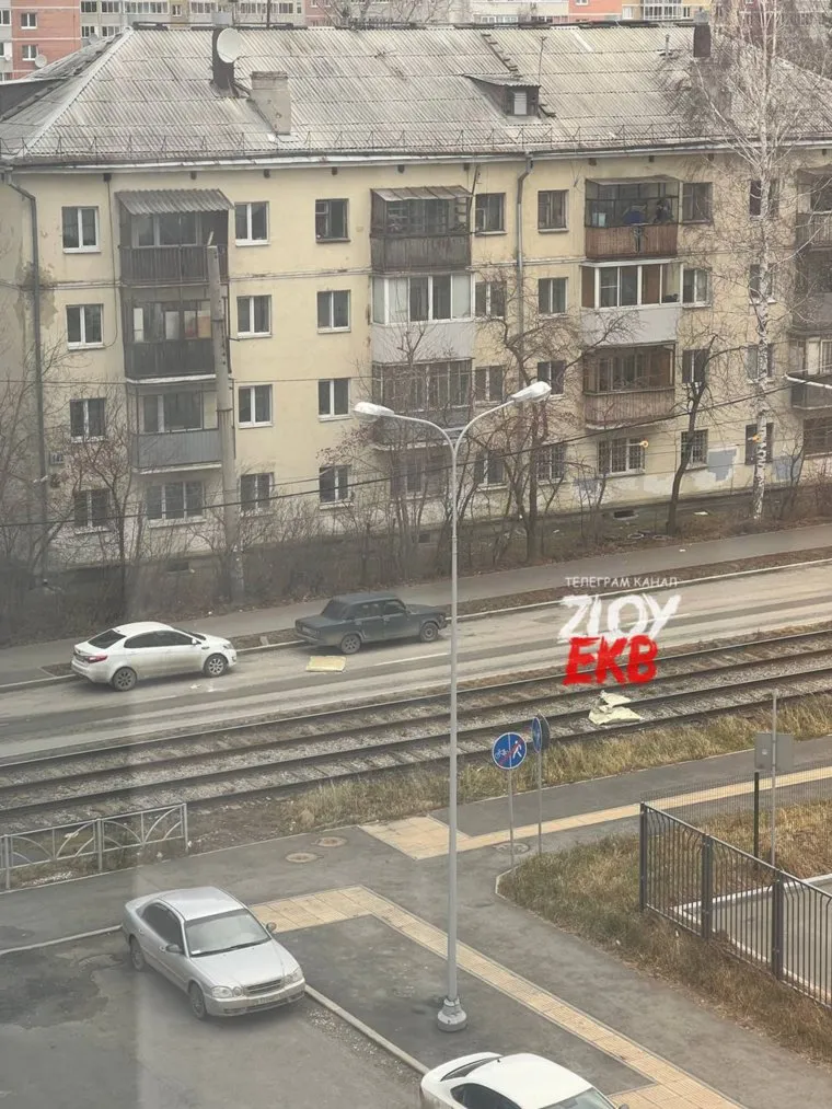 Владелица автомобиля дозвонилась застройщику, ей сказали, что возместят испорченное имущество. Компания посоветовала жителям дома не выходить не улицу. По фото видно, что куски утеплителя со штукатуркой валяются даже на трамвайных путях.