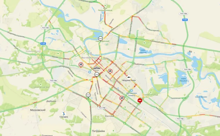 Вечерние пробки в Тюмени достигли девяти баллов. Карта