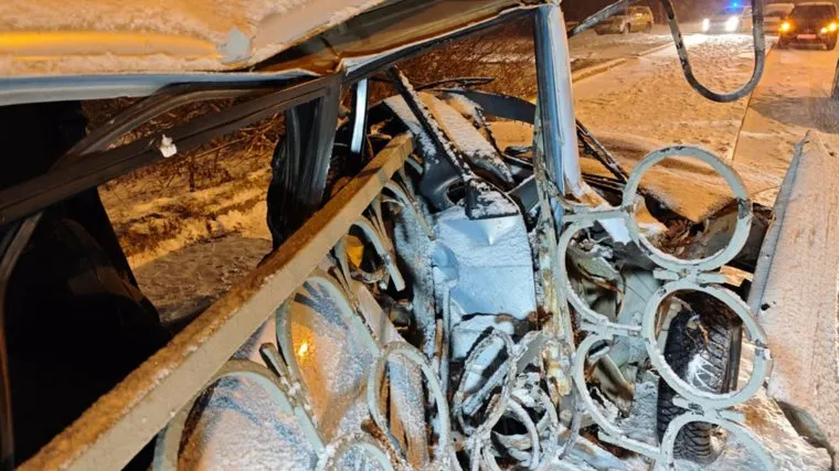 «От машины почти ничего не осталось»: в Екатеринбурге легковушка жестко влетела в забор. Фото
