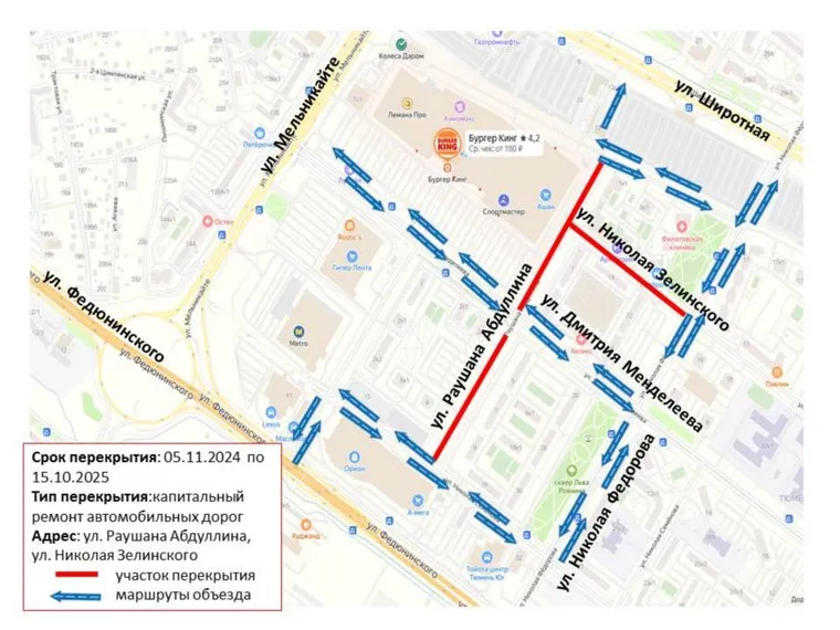 В Тюмени до 15 октября 2025 года перекрыли проезд по участкам улиц Раушана Абдуллина и Николая Зелинского. Об этом URA.RU рассказали в мэрии города.