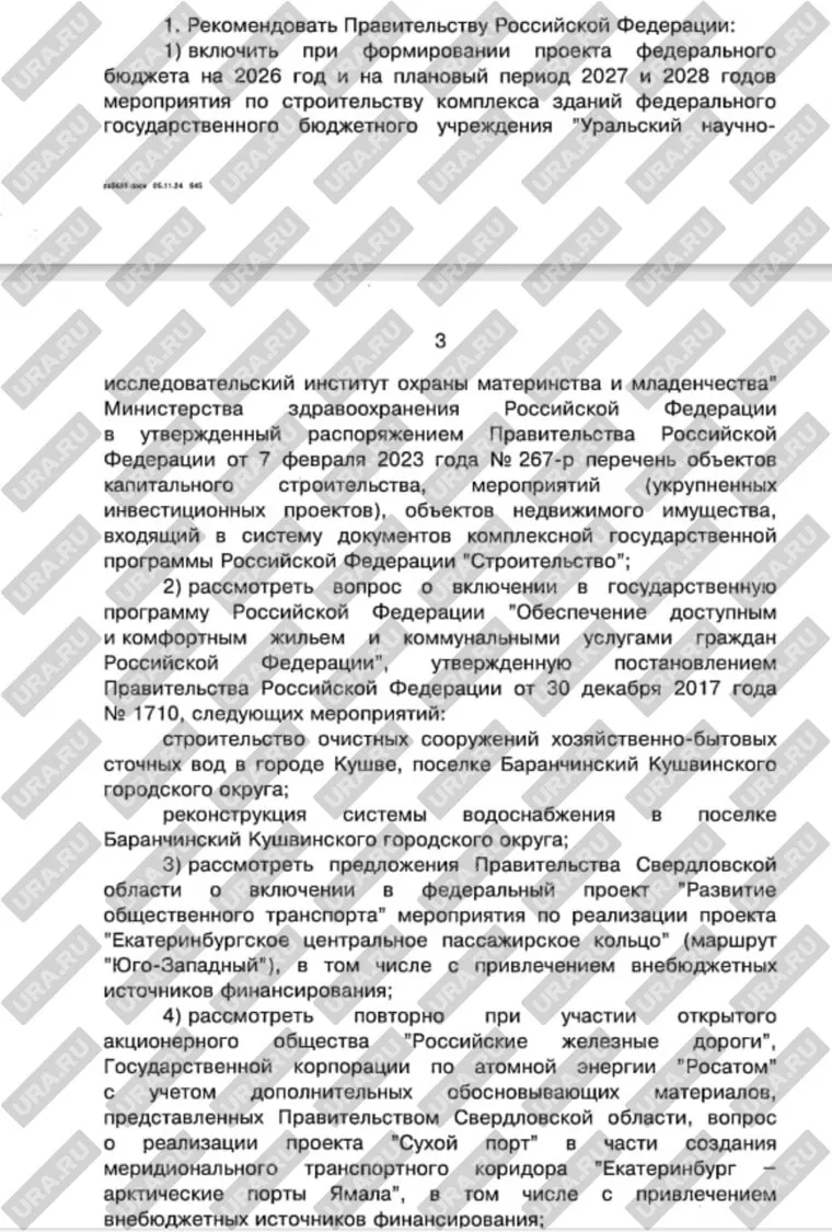 «Совет Федерации постановляет рекомендовать правительству РФ: включить при формировании проекта федерального бюджета на 2026 год и на плановый период 2027 и 2028 годов мероприятия по [далее — список проектов, указанных в материале выше]», — говорится в документе. Его утвердили на заседании Совфеда 6 ноября.