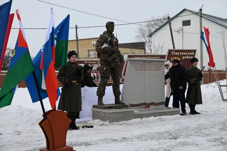 В тюменском селе Омутинское открыли памятник героям СВО. Фото