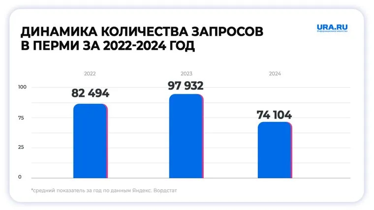 Уточняется, что количество запросов резко увеличивалось каждый год: в июле, августе и декабре. При этом декабрь 2023 года побил все рекорды по количеству запросов. Слово «проститутки» тогда пермяки искали 189 тысяч раз.