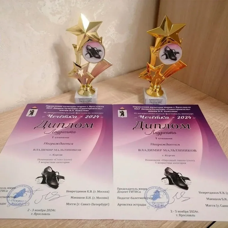 «Слесарь ремонтного цеха кузнечно-литейного завода принял участие в IX Межрегиональном фестивале-конкурсе „Чечётка-2024“, который прошел в начале ноября в Ярославле. Владимир Мальтиников стал лауреатом первой степени в своей возрастной группе в номинациях „Народный танец“ и „Степ“ (соло)», — сообщает Курганский машиностроительный завод в своем паблике.
