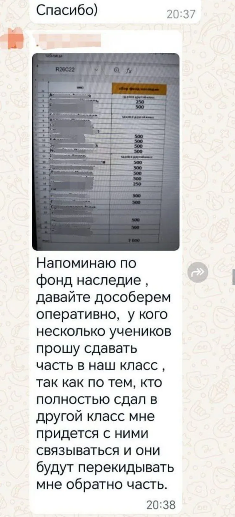Пример сообщения о поборах в школе Уфы, предоставленного Ксении Собчак родителями