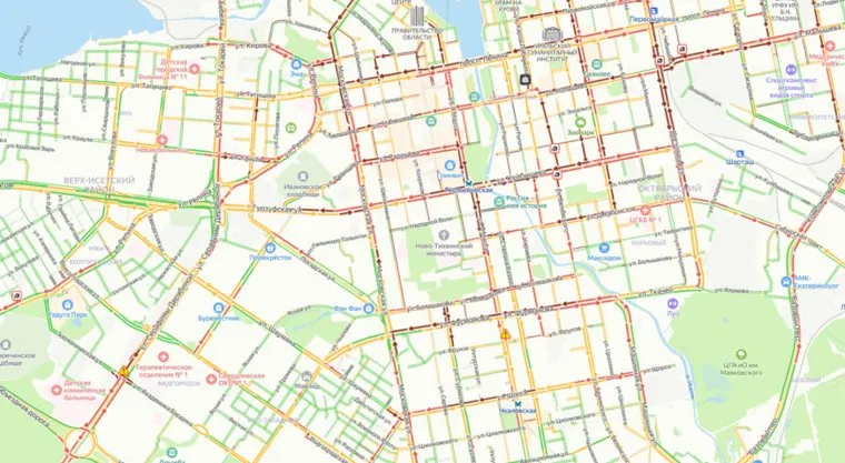 «Движение в центре полностью парализовано, автобусы и трамваи курсируют с долгими промежутками. На Радищева нет трамвая №1, в приложениях маршрут также не отображается. Как добираться в Академический, непонятно», — сказал очевидец. По словам других, пробки выстроились в сторону Уралмаша, автовокзала и Сортировки. «Без взлета цен на такси не обошлось», — отметил еще один собеседник.