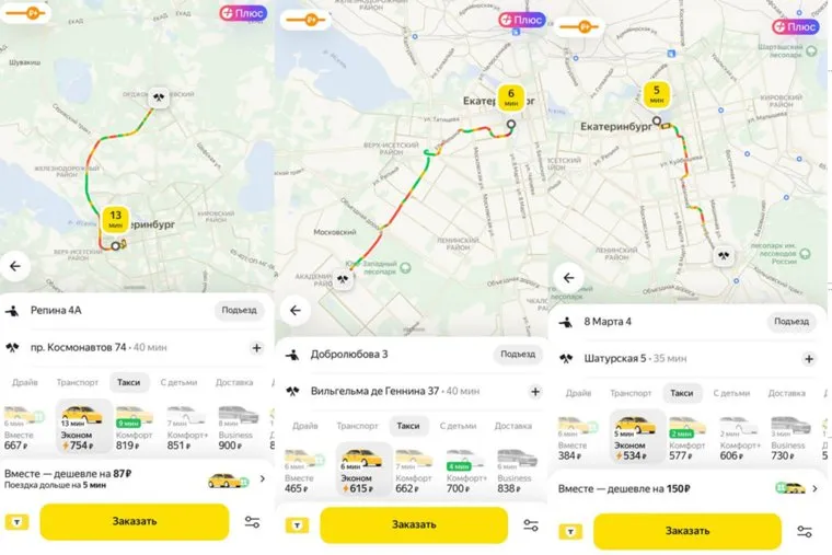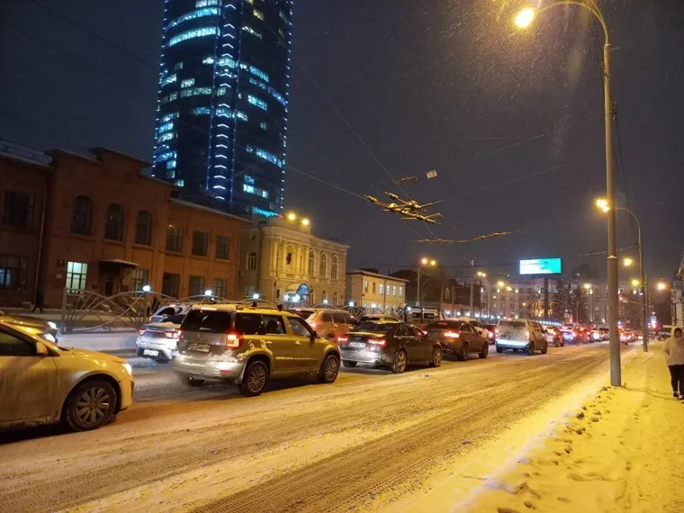 Екатеринбург встал в девятибалльные пробки, цены на такси взлетели. Фото
