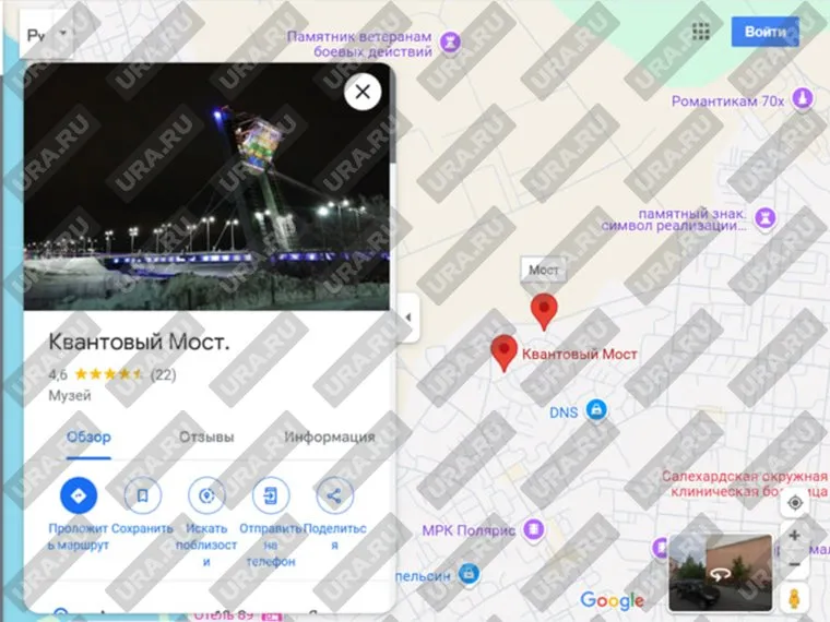 В картах поисковика Google пользователей сети направляют к невиданному «квантовому мосту» в Салехарде. Ошибка, подмеченная жителями Ямала, подтверждается при запросе «вантовый мост „Факел“.