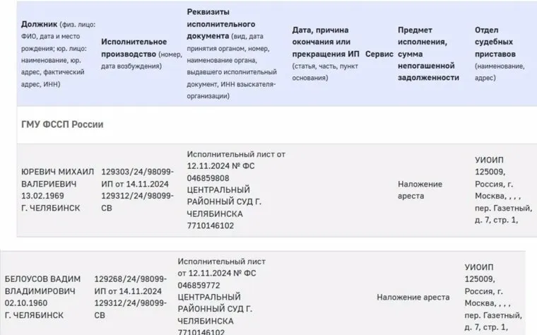 По требованию ФССП выданы исполнительные листы на арест имущества и счетов челябинского экс-губернатора Михаила Юревича, его бывших жен, а также сооснователя холдинга «Макфа» Вадима Белоусова. Соответствующее решение принял Центральный районный суд Челябинска.