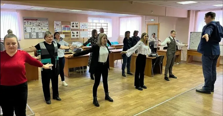 На станции Нижнеудинск Гордеенок провел лекцию о принципах здорового образа жизни и показал упражнения для повышения работоспособности