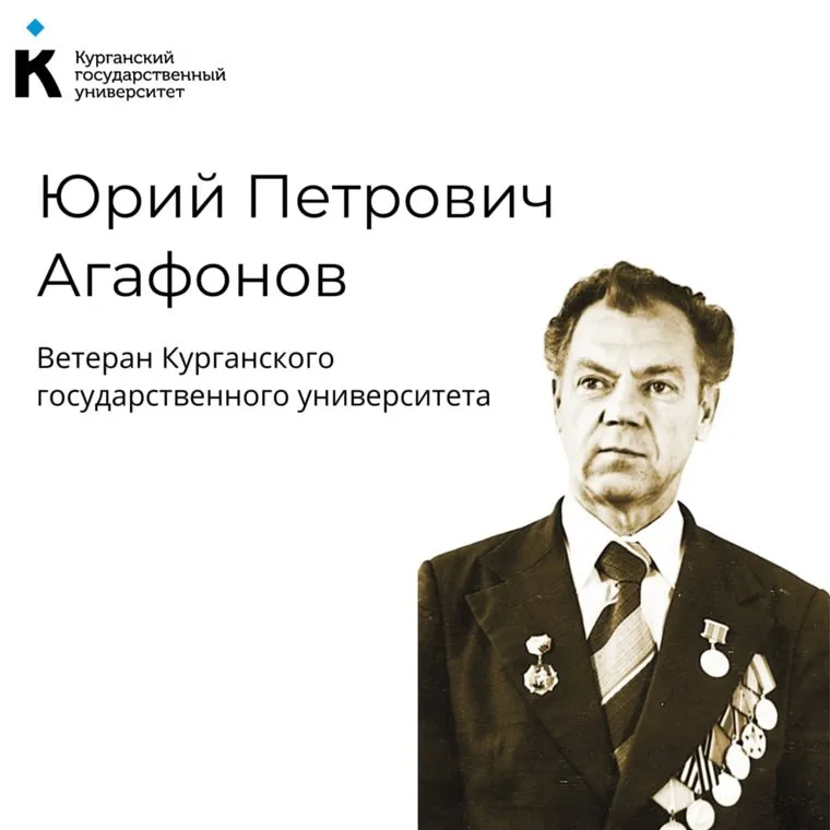 «Юрий Петрович Агафонов — участник Великой Отечественной войны, свою профессиональную жизнь посвятил Курганскому машиностроительному институту — одному из двух вузов, правопреемником которых является КГУ. В 1941 году Юрий Петрович закончил школу, поступил в институт. В сентябре 1942 года его призвали на фронт. Служил стрелком в составе 67-го гвардейского стрелкового полка 20-ой гвардейской стрелковой дивизии, а потом пилотом военно-воздушных сил. Был ранен», — сообщили в вузе.